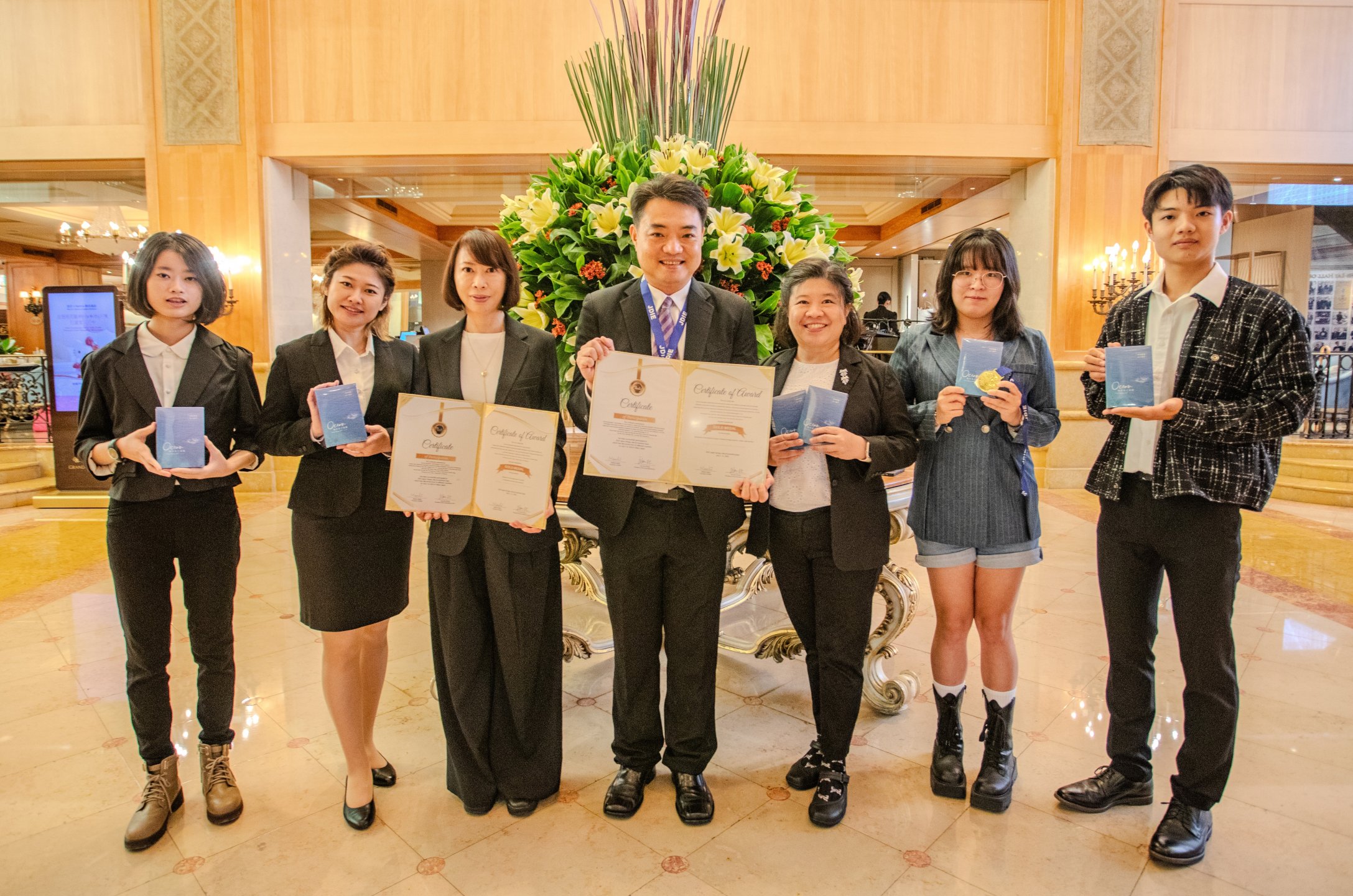 另一金牌作品「香草素在化妝保養品之應用研究」則同樣由謝天傑教授帶領,邀集長榮大學、碧璽事業有限公司、輔英科技大學、以及來自高雄市立福誠高中與立志中學等各級學研單位共同合作,團隊成員橫跨大學、高中與產業界,實踐跨齡跨界共研的精神。該作品聚焦於香草素在抗氧化、抗菌、美白與抗發炎的應用價值,透過奈米膠囊與脂質體包覆技術提高其穩定性與滲透力,並延伸至香草素多聚體的合成研究,獲得國際金牌肯定。