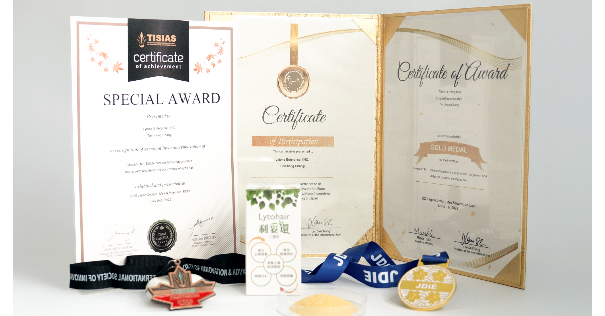 來自台灣的利統股份有限公司(Lytone Enterprise, INC.)此次攜創新研發成果《利妥黑:促進毛髮生長及延緩白髮生成的可食用組合物》參展,表現亮眼,一舉榮獲金牌與加拿大特別獎雙項殊榮。展出期間,利統展位吸引絡繹不絕的參觀人潮,詢問度與關注度居高不下,展現驚人吸引力。